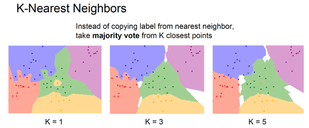 - Intuitively, higher values of k have a smoothing effect that makes the classifier more resistant to outliers