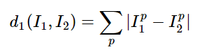 - Given two images and representing them as vectors I1,I2 , a reasonable choice for comparing them might be the L1 distance: