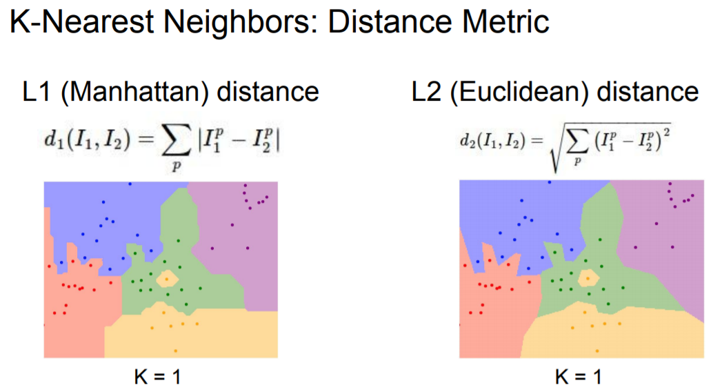 4) L1(Manhattan distance) vs. L2(Euclidean distance)