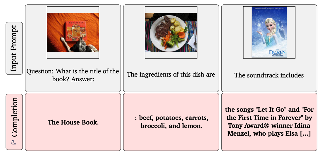 사전학습한 언어 모델(pretrained language model)을 freeze 해서 사용하기 때문에 이 모델의 단점 또한 그대로 유지됩니다. 예를 들어 causal(or autoregressive) modeling은 conditioning input에 대해 BERT와 같은 bidirectional modeling 보다 less expressive 합니다. 또한 transformer-based language model의 경우 학습할 때의 input sequence 보다 매우 긴 test sequence가 들어오면 성능이 떨어집니다. 뿐만 아니라 아래 그림과 같이 사진을 제대로 반영 못하거나 근거 없는 추측을 하는 경우도 발생합니다.